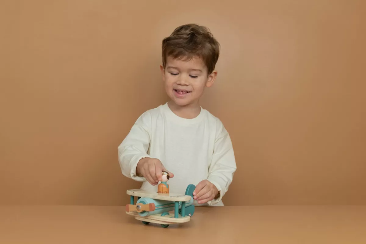 Prêt pour le départ ! Tu es le pilote aux commandes : démarre ton moteur, tourne l'hélice et partons à l'aventure ! Cet avion jouet est conçu pour le jeu interactif et imaginatif. Les roues roulent en douceur et font glisser facilement votre enfant sur le sol pour explorer de nouveaux territoires. La poupée pilote est adaptée aux autres sets de jeu de la maison de poupée, tels que la caravane et le bus scolaire. L'imagination de votre enfant s'envole très loin avec ce joli avion jouet en bois.