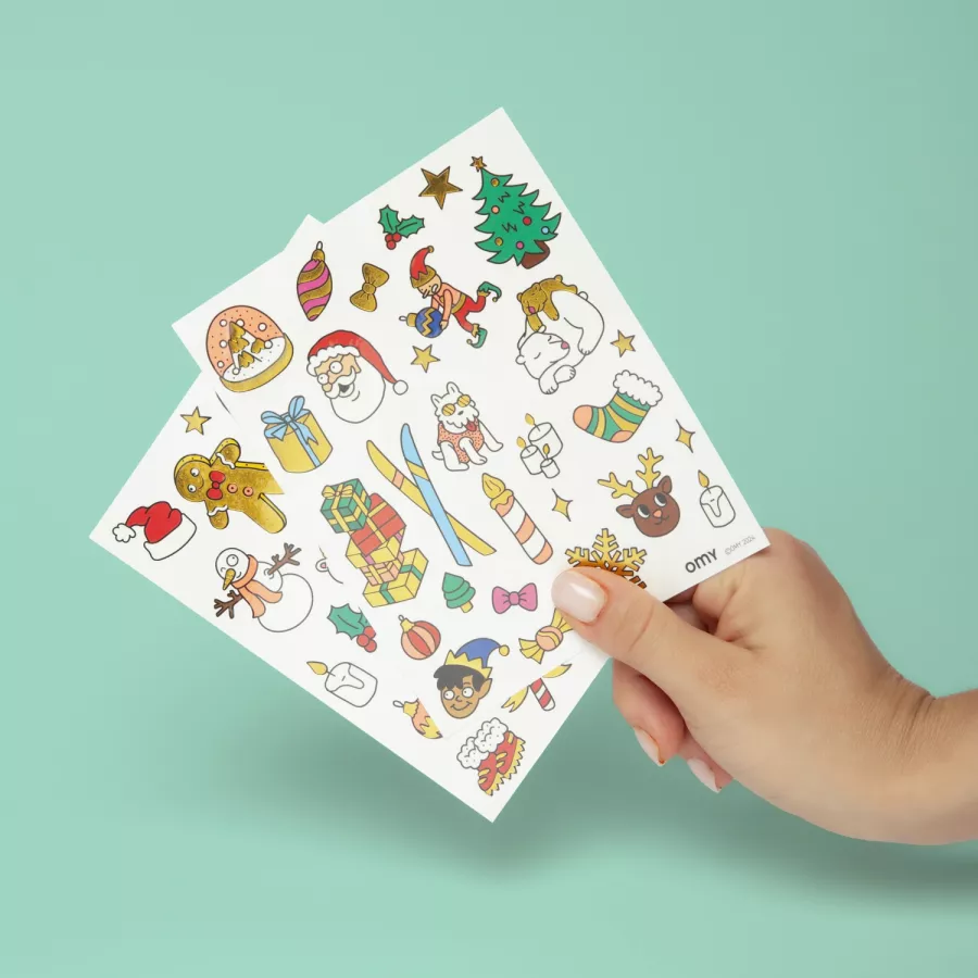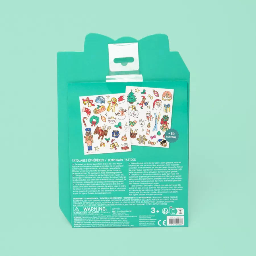 Offrez un moment magique et créatif aux enfants avec cette planche de 50 tattoos temporaires aux couleurs fluo et touches dorées. Sur le thème de Noël, ils retrouveront des rennes rigolos, sapins scintillants et plein d'autres surprises hivernales à coller sur la peau !