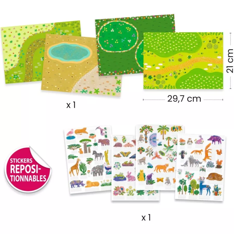Très chouette activité à faire dès 3 ans : votre Joufflu colle les autocollants repositionnables sur les différents décors pour faire de vraies scènes illustrées !