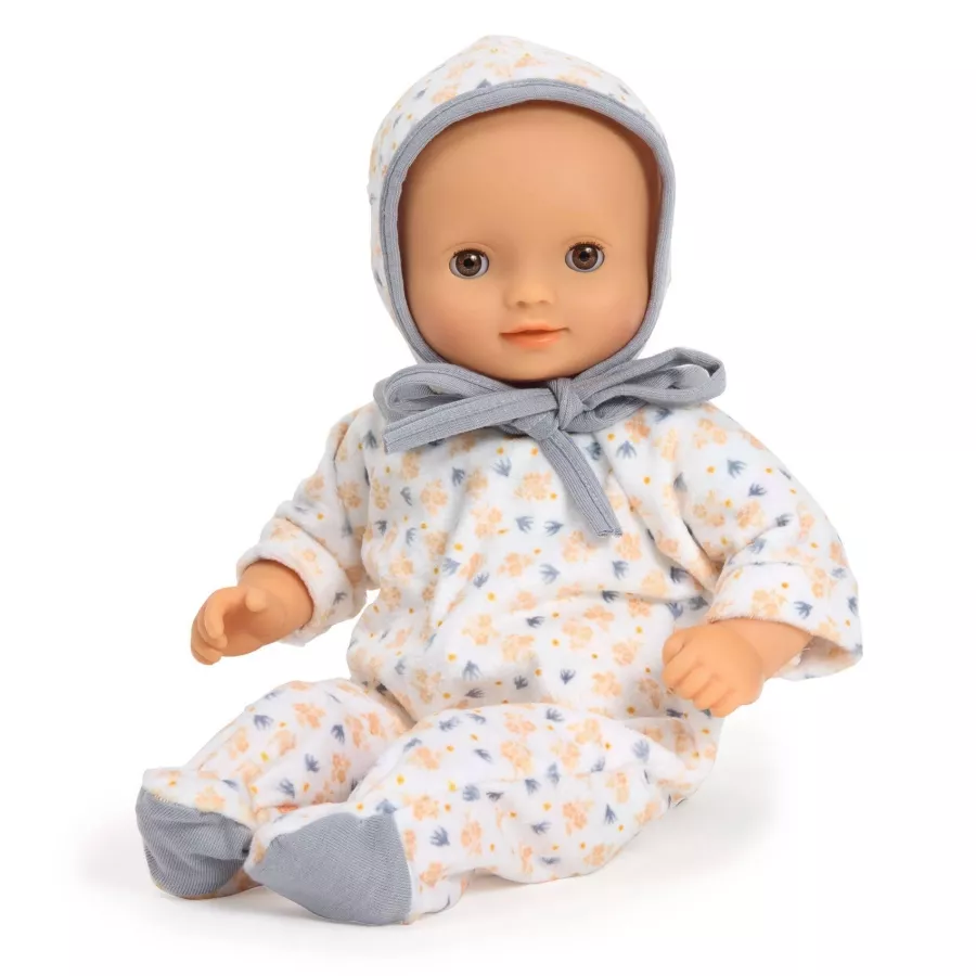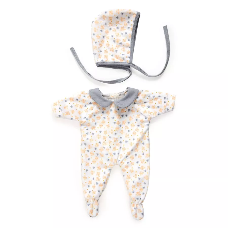 On habille notre jolie poupée Poméa, avec ce petit pyjama en velours et son beguin.