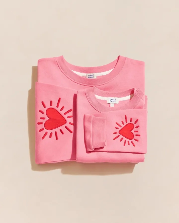 Sweat adulte Coeur solaire - Rose (plusieurs tailles)