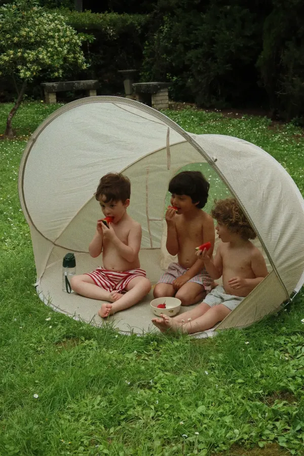 Découvrez la tente de plage Tea stripe de la marque Konges Slojd. 100 % en polyester, elle se déploie instantanément grâce à son design pop-up pour une installation facile. Offrant une protection optimale contre les rayons UV, elle crée un espace ombragé idéal pour les enfants, conformément aux normes CE. Compacte et légère, elle se prête à toutes les aventures estivales, assurant des moments rafraîchissants et sécurisés sous le soleil éclatant.