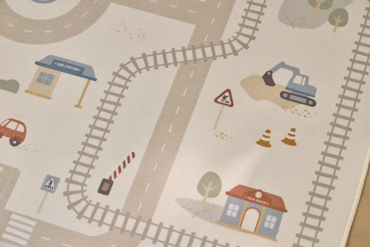 Ce tapis circuit de voiture invite les enfants à découvrir une petite ville pleine de charme, où chaque détail devient une nouvelle piste de jeu. Entre les routes, les ponts, le rond-point, la voie ferrée et les différents paysages, les voitures peuvent circuler librement d’un endroit à l’autre. L’enfant imagine ses propres trajets, crée ses histoires et donne vie à sa propre ville. Conçu dans des couleurs douces, ce tapis offre un espace de jeu confortable et inspirant, idéal pour accompagner les moments d’imagination. Alors, prêt à faire rouler tes voitures à travers la ville ?