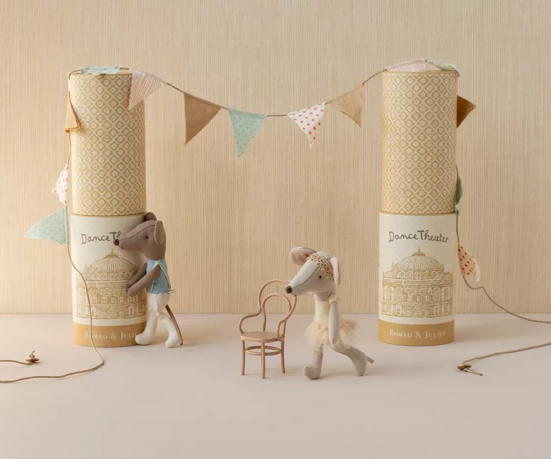 Un véritable danseur de ballet. La souris est livrée dans un joli coffre, en forme de tube, et inclut un support à l'intérieur pour exposer les souris et les mettre en scène.