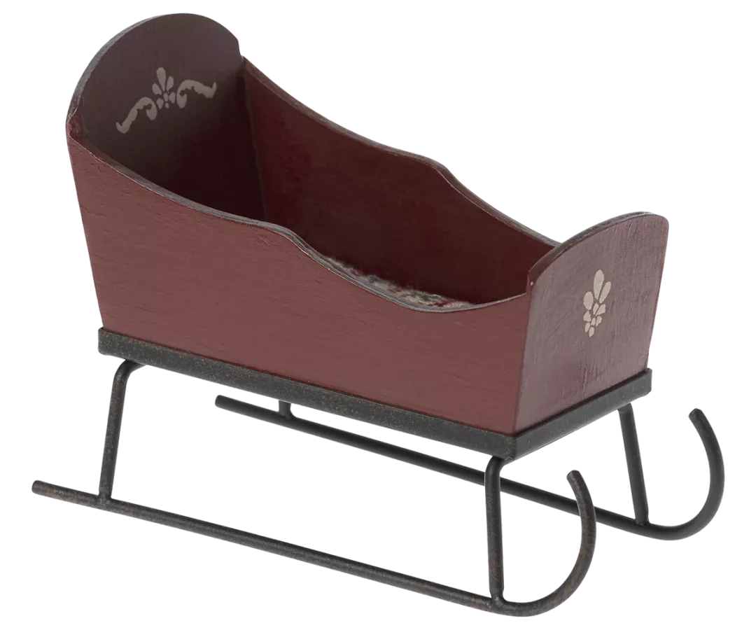 Joli petit traineau en bois avec petit matelas à l'intérieur.