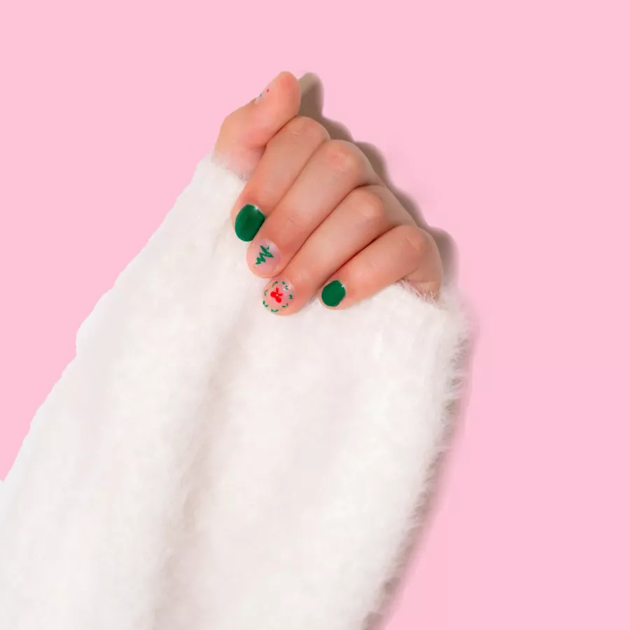 Le coffret de vernis à ongles 2-en-1 Ho Ho Ho est une invitation à briller pendant les fêtes tout en s’amusant ! Un doré lumineux, un rouge éclatant et un vert profond : notre trio festif te permet de créer des manucures de Noël facilement directement à la maison ✨