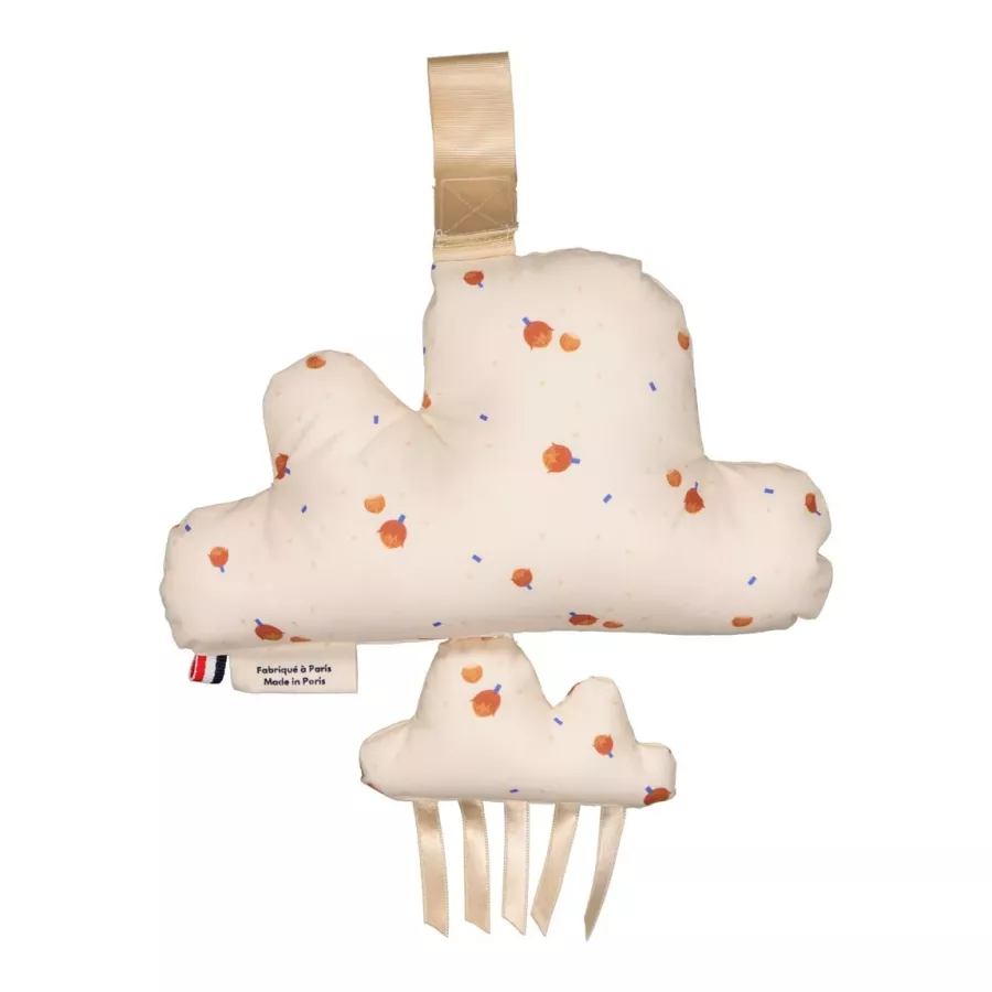 Ce joli mobile musical en forme de nuage s'accroche facilement grâce à son velcro, aux barreaux du lit, sur un mur, ou encore sur la poussette lors des promenades...
