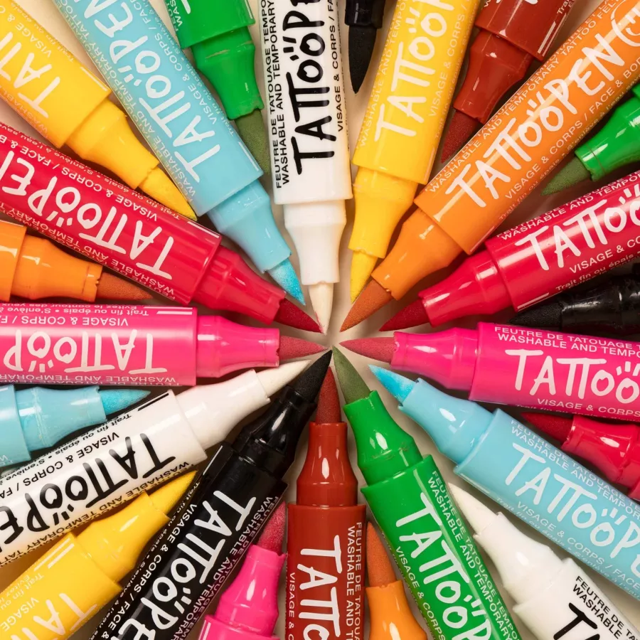 Composés à 60% d’eau, les feutres Tattoopen permettent d’explorer le dessin sur peau sans risques !