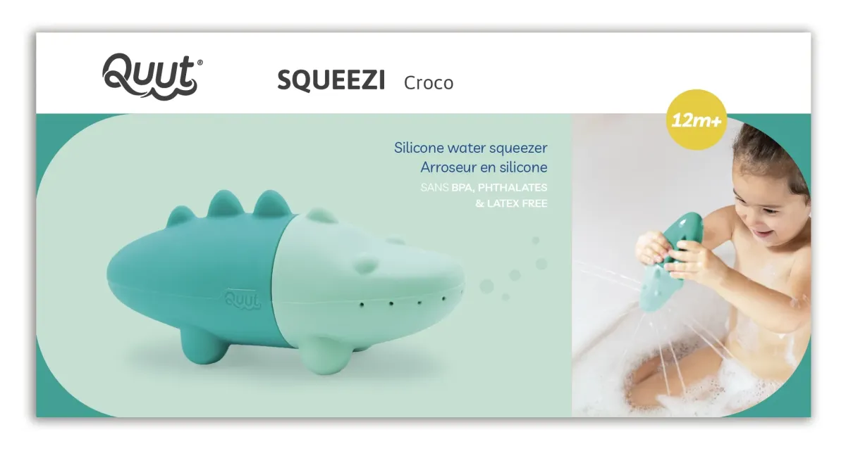 Croco te guidera à travers les rivières de tes rêves les plus fous et les eaux aventureuses de la baignoire ! Même les plus petites mains peuvent facilement le remplir d’eau. Il suffit de le presser sous l’eau pour le remplir. Une fois l’aventure terminée, il suffit de presser l’eau pour la faire sortir et regarder le crocodile flotter.